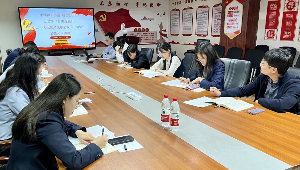 聽完各位黨員同志的感悟分享,齊盛期貨公司黨支部書記高軍對全體黨員提出了要求。高軍指出,要全面準(zhǔn)確學(xué)習(xí)領(lǐng)會黨的二十大精神,堅持知行合一,貫徹落實好黨的二十大作出的重大決策部署,增強“四個意識”、堅定“四個自信”、做到“兩個維護(hù)”。要在集團(tuán)黨委統(tǒng)一領(lǐng)導(dǎo)下,密切配合,把學(xué)習(xí)宣傳貫徹黨的二十大精神與加強領(lǐng)導(dǎo)班子建設(shè)和基層黨組織建設(shè)結(jié)合起來。